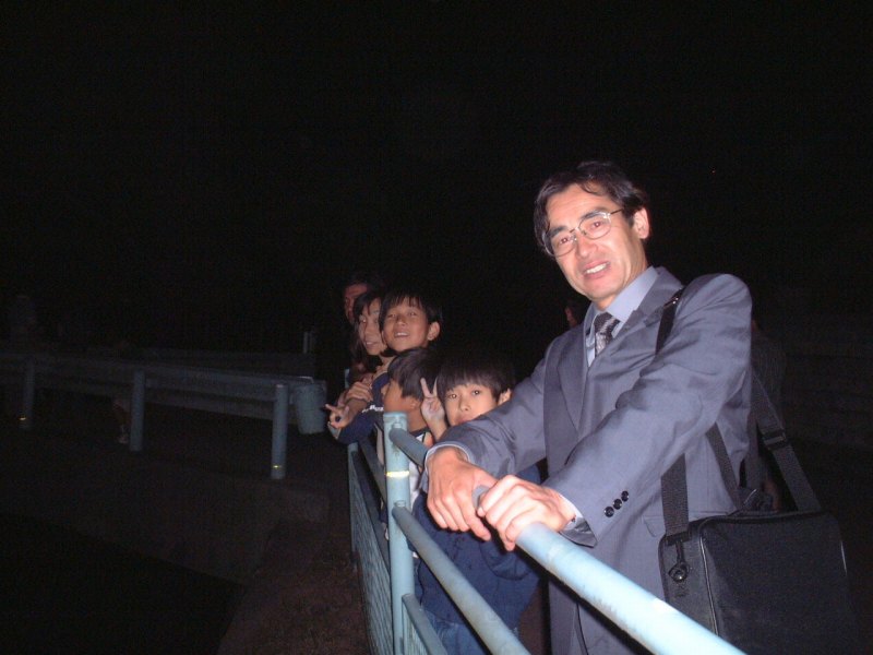 (左)一の坂川のホタルを 見に行くとたくさんの人出